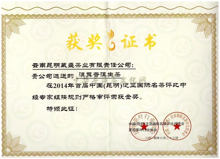 滇茗厚酽藏神韵,茸菁醇和蕴天香! 首家‘中国普洱茶民族文化特色品牌’企业——昆明葳盛茶业旗下的系列品牌普洱茶代表着葳盛普洱印象及云南特色民族普洱茶文化。到葳盛来茶友们可鉴赏到葳盛珍藏的各时期陈年普洱茶,以及公司专利专业研发的多款精品普洱茶,滇茸牌系列--红茶、普洱茶精品,同时与原产地联合研发了端砚茶盘,名家紫砂壶,关西铁壶,香道,景德镇瓷器等特色茶文化产品。 英国皇家红茶有限公司于2011年5月正式授权昆明葳盛茶业有限责任公司作为中国总代表,全权负责英国皇家红茶有限公司开发、研制中国系列茶品,葳盛茶业于2011年开发出3款风韵迷人的红茶产品,并命名为“滇茸”,寓意云南最好的东西。分别是:滇茸金芽红、金丝红、老树红。2013年延续制作金芽、金丝红外,又开发、研制了滇茸系列又一精品红茶—【滇茸高香红】、【滇茸黄金红】,味浓韵深,品质绝佳!【滇茸】系列工夫红茶,原料均选自云南上百年的古茶树,条索肥壮、银毫满披,色泽乌润油亮,汤红味浓,香气高扬,滋味醇厚鲜爽,耐泡持久。国内外众多茶友均青睐有嘉! 普洱茶既是一种物质享受,也是一种精神修为,文化普洱,与普洱文化是相辅相随于普洱茶发展的统一体,文化普洱与普洱文化相辅相成,共同繁荣。今年春,葳盛在经过多次研发精心制作,终于开发出【滇茸】品牌普洱系列,绵纸上赫然醒目的大字正是由中国十大杰出书法家之一的单永钦老师亲笔撰写,笔锋苍劲有力,甚为豪迈。该茶品采自地处高山云雾、原野生态的乔木大叶古树春尖为原料,采用传统制作工艺制成,此乃“高山古树 原野珍品”!茶菁叶片宽大,茶梗粗壮,芽头肥厚,香高气强,茶汤剔透,滋味醇和,回甘持久,耐泡耐饮。经质检机构检验质量合格,是普洱茶原产地地理证明标志产品。可喜可贺的是【滇茸】普洱茶在2014年首届中国(昆明)泛亚国际名茶评比中经专家组按规则严格审评分别荣获金奖和银奖。