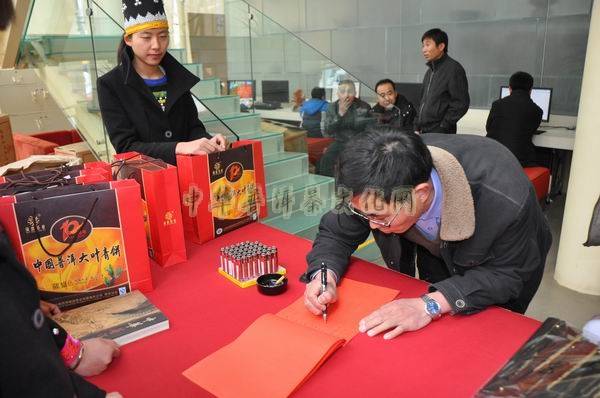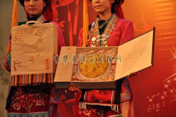 在这个充满喜庆的日子里,云南葳盛文化传播有限公司和云南葳盛茶文化基金会也在这一天举行揭牌仪式,同时爱心基金拍卖活动在一次把活动推向高潮,公司总经理张明春特意把总发行量只有666套,由5饼茶组成的《茶•人•书•壶•馆》套茶,将封存已久的编号为555和666的两套《茶•人•书•壶•馆》和2005年哈尼公主茶:由一个圆茶饼及一筒散茶组成,圆茶饼总净重880克,一筒散茶净重120克拿出来现场竞买,竞买所得款全部转入爱心基金会。
