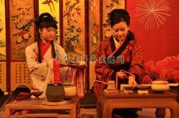 葳盛茶艺师正在表演汉服茶艺