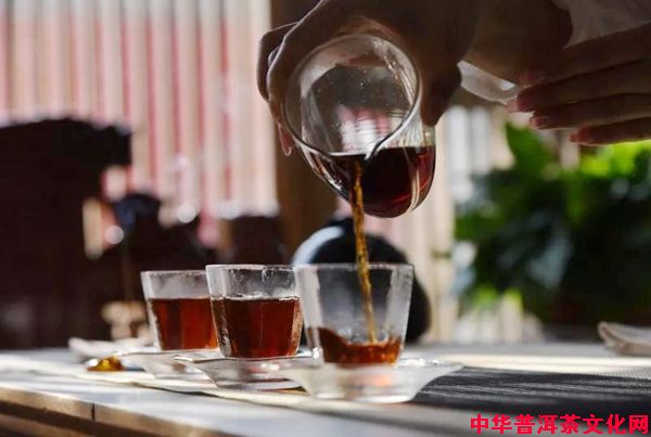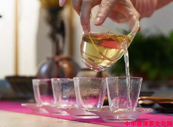 给客人分茶时应使用公道杯,公道杯的作用是均匀茶汤的浓度。给客人倒茶时,要做到每杯茶水量一致,以示茶道公正平等,无厚此薄彼之义。倒茶只倒七分满,倒太满容易烫手,也不方便客人饮茶。