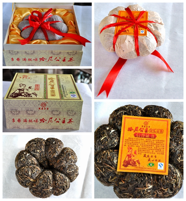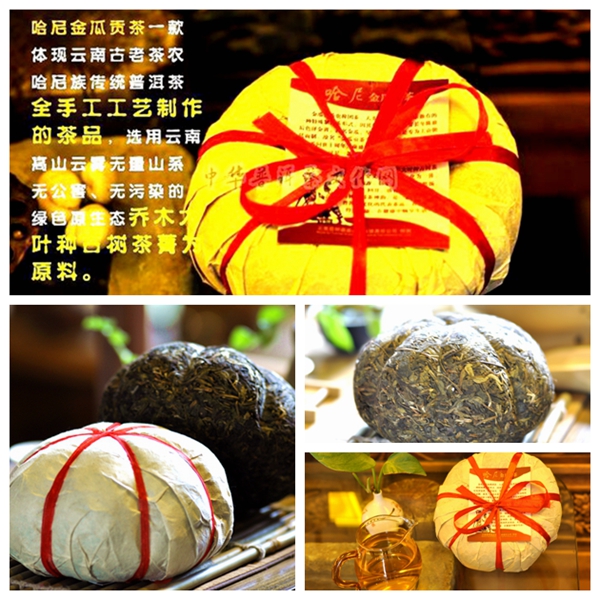 金瓜贡茶,现留存的实物,据专家考证,已有200多年的历史.此茶品生产厂或说成品加工者为普洱贡茶茶厂,原料及初制系西双版纳倚邦茶山。