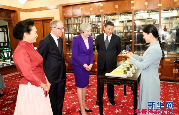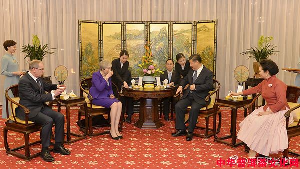 2018年2月1日下午,国家主席习近平和夫人彭丽媛在北京钓鱼台国宾馆同来华访问的英国首相特雷莎·梅和丈夫菲利普·梅茶叙。英国是下午茶故乡,习梅茶叙可谓茶逢知音。