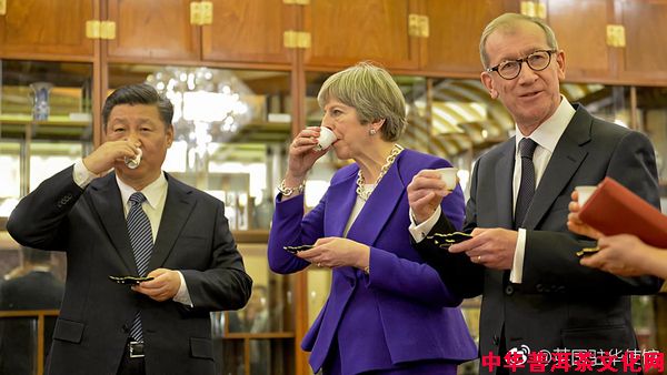 2015年10月19日至23日,习主席访问英国,先后两次在晚宴时说到茶事:“中国的茶叶为英国人的生活增添了诸多雅趣,英国人别具匠心地将其调制成英式红茶。中英文明交流互鉴不仅丰富了各自文明成果、促进了社会进步,也为人类社会发展作出了卓越贡献。”(央广网,2015年10月22日)