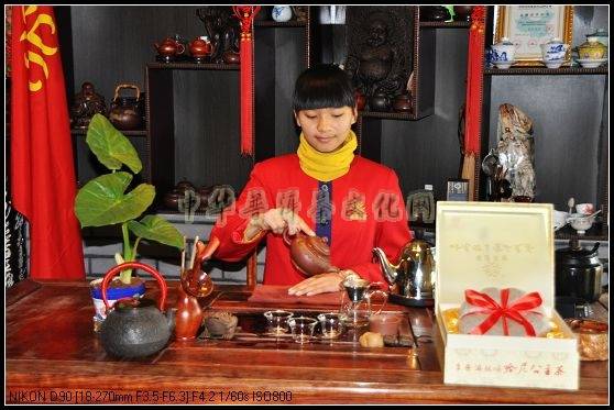 葳盛茶业茶艺师刘云琴在冲泡哈尼公主金瓜贡茶