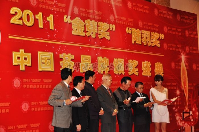 云南普洱茶协会会长张宝三(左三)在颁奖盛典上喜获【2011中国茶行业特别贡献奖】