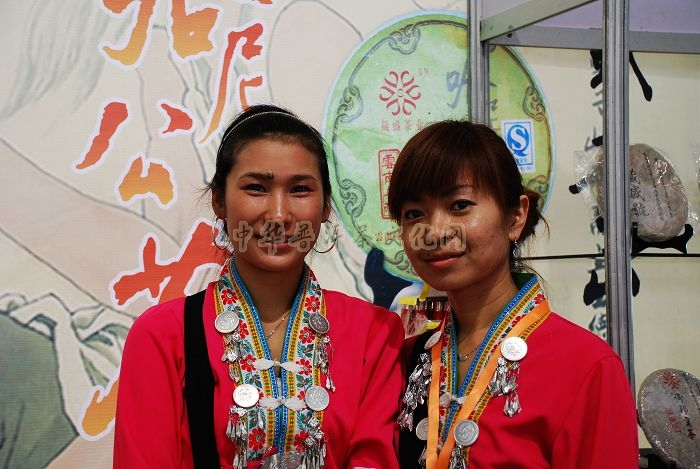 葳盛茶业在展会上展示的主打产品“哈尼公主系列”“德昂系列”普洱茶