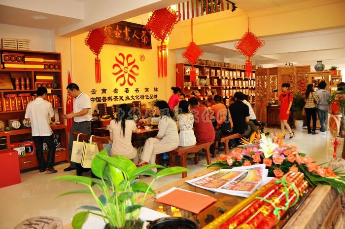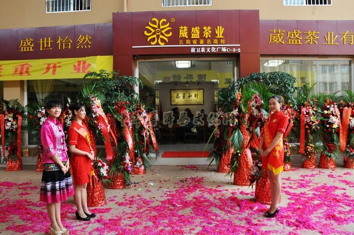葳盛茶业前卫茶文化广场形象旗舰店于8月29日下午14:30隆重开业!参加开业活动的有茶界行业的相关领导、茶人茶友及省外爱茶人士等。人们可现场亲自压制个性普洱茶及红酒品鉴等多项精彩活动。各界茶人茶友及嘉宾近百人光临开业仪式,人们兴高采烈,喜气洋洋。云南省著名商标企业葳盛茶业成立于2004年,于2000年在位于云南昆明关上宝海公园大门旁新创了一个集室内外为一体的质朴、典雅、充满着茶文化气息的中式茶艺馆,自此翻开了以茶为伴、以茶为缘的现代都市中的休闲论道的一页。历经图治,十年磨砺,葳盛茶业公司逐渐发展成为从茶叶原料采摘、初制、加工、开发、精制、品牌销售、茶艺表演、茶艺培训、茶叶鉴赏、茶叶品饮、茶文化交流于一体的综合性茶文化传播公司,现已成为中国普洱茶优秀品牌企业及中国普洱茶民族文化特色品牌,在茶文化传播与普洱茶品鉴中都力求精益求精、至上至诚。自成立以来,相继开设了葳盛茶行;醴水茶屋;西区茶人书壶馆;葳盛普洱府;螺蛳湾茶人书壶馆;丽江茶人书壶馆;北区茶人书壶馆;郑州茶人书壶馆;曲靖茶人书壶馆。葳盛茶业旗下分公司都具有不同的功能,各有特色,各有千秋,可谓葳蕤茶香,盛世怡然。