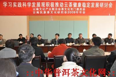 2009年1月18日,在云南省政协委员活动中心,云南民族茶文化研究会在这里召开了以“学习实践科学发展观,努力推进云茶健康发展”为主题的研讨会。来自云南民族茶文化研究会的有关领导、学术委员及茶界知名学者、专家、企业家及各大媒体等有关方面人士80多人参加了这次研讨会。会上云南民族茶文化研究会会长李师程、云南省文化厅副厅长范建华及参会人员分别就2008年云茶产业的发展状况、存在的问题及2009年的发展对策等各个方面展开了深入探讨。研讨会在云南民族茶文化研究会会长助理戴云主持下,提出了不少有学术价值的观点及对策建议。
