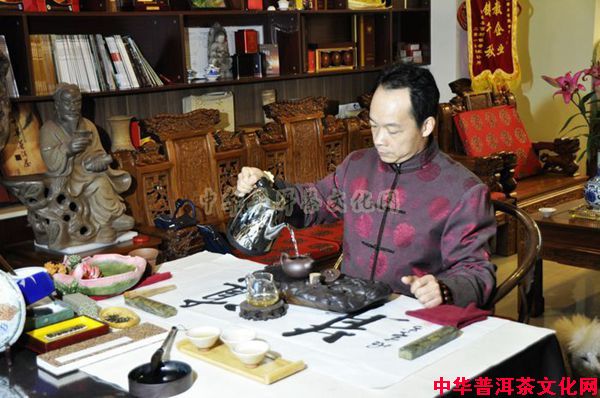 在泡茶时,可以将洗完茶具的热水用来冲洗茶盘,还可以将第一遍洗茶的茶水用以冲洗端砚茶盘,这么做会有去霉味,杀菌消毒的作用。茶具需要茶水的温润,同样茶盘也需要,每次倒水难免溢出来,可以用养盘笔将溢出的茶水刷到端砚茶盘上没有被水浸湿的地方。