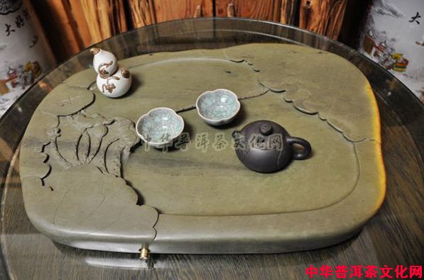 由于端砚石质与水相亲,湿水后犹为晶莹剔透、温润如玉、细腻而润滑,因此制成茶盘,犹为合适。端砚茶盘全部采用名贵的端砚石为原料,端砚茶盘石质幼嫩、细腻、滋润,采用中国传统手工工艺处理,根据石头的天然特性,由名师设计,精心雕琢而成,一石一作品,其独特材质不但具有遇冷遇热不干裂、不变形、不褪色、不生异味、不易沾茶垢、易清洗、磨光后不会吸茶色、不易滋生细菌等优点,既具备实用价值,而且外观美观大方,别致典雅高档,也具备把玩、观赏的雅趣。同时,还富有中国传统文化内涵,体现中国茶文化之独特,还具备珍藏价值,历久经年,价值犹存,实为实用与珍藏的一大珍品。