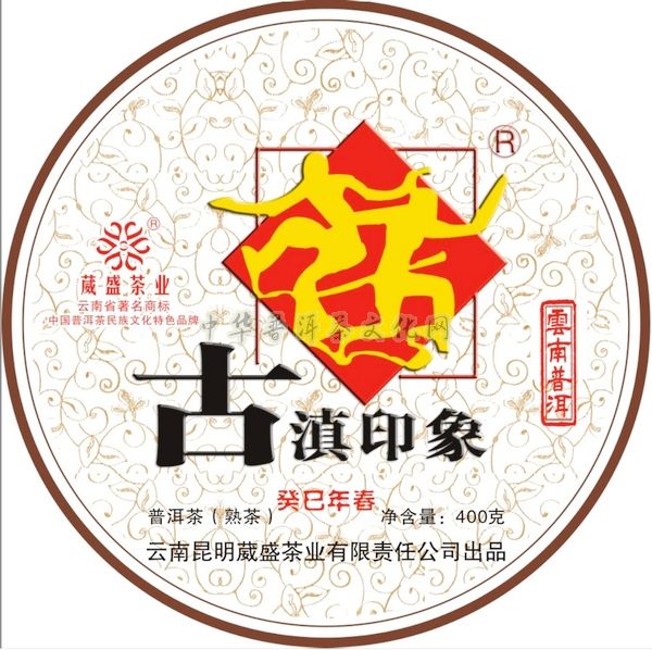 为传承历史,弘扬古滇文化,葳盛茶业于癸巳年春开发研制了该款中国古滇文化与普洱茶文化的完美结合之尚品【古滇印象】普洱茶,并已获得国家工商总局商标局商标专利部门批准使用,该款精选云南乔木大叶种古树茶菁,以民间传统工艺精制而成的普洱茶。古滇文化所代表的不仅是云南古代各族人民智慧的结晶,也是中国古代文化的重要组成部分,体现出勤劳善良的云南少数民族不断奋进、开拓、创造出丰富多彩的云南民族文化。多彩生活,载歌载舞的人形图案,象形“双囍”之意境,呈现出一幅努力向前,共创美好未来,拥有着快乐、吉祥的幸福生活美景。