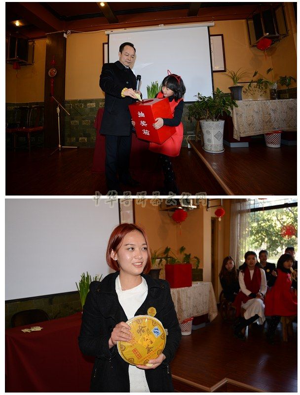 总结会结束后,下午进行了多姿多彩的文艺演出,全部由葳盛员工自己编排。在一支欢快喜气的抓财舞中热烈开场了,接下来有一系列的精彩节目,如茶文化交流中心团队表演的舞蹈《day by day》,葳盛团队合唱歌曲《青春舞曲》,独唱《彩云之南》、舞蹈《小苹果》、《肚皮舞》,副总代青演唱了《好人一生平安》等等。充分展示了茶艺师们专业以外的多种才艺,还给宾客及家人们带来了节日的问候和祝福。每年的保留节目依然是抽奖环节。节目之间依次抽出了幸运奖3名,三等奖3名,二等奖2名,一等奖1名。奖品都是葳盛的品牌普洱精品、名家紫砂壶等。抽奖让活动高潮不断,惊喜连连,为了尽兴,还临时增设特等奖一名,奖品是10年历史的葳盛珍藏版哈尼公主大饼套装,这套茶纪念意义非凡,它开启了葳盛品牌建设发展之路,听到“哈尼公主”这个响亮亮的名字时葳盛人充满了骄傲!