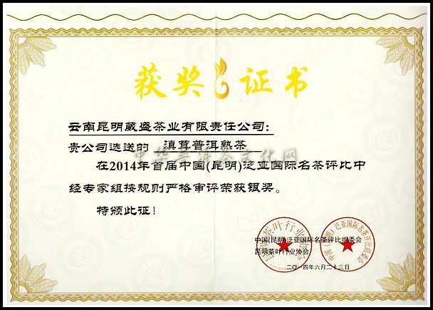 滇茸熟茶荣获银奖