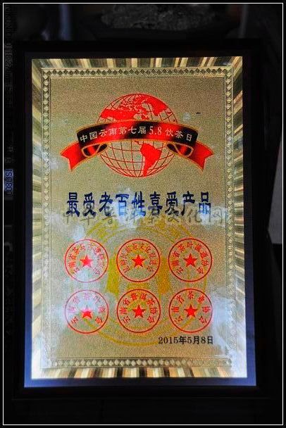 2015年第七届5.8饮茶日暨“饮茶健康,茶进万家”活动,在昆明市雄达茶城隆重举行,昆明葳盛茶业公司茶品在5.8“饮茶日”活动中被评为“最受老百姓喜爱产品”。