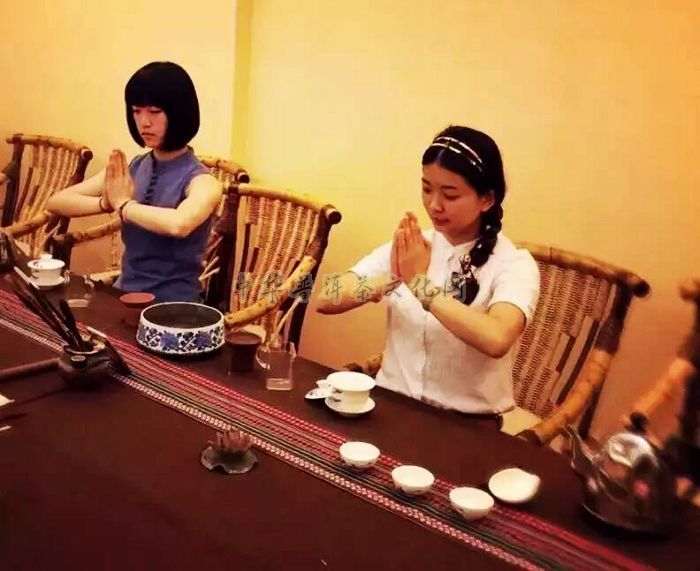 △美美的两位茶艺师正在为第八届勐海(国际)茶王节练习茶艺表演!