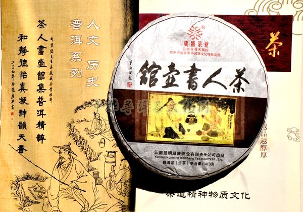 2006年8月8日,葳盛茶业第一款【茶人书壶馆】诞生,一套五片,每片400克,选用澜沧江流域江内外的易武、蛮砖、倚邦、布朗、无量山系最具综合代表性的五大茶山大叶种古树茶箐为原料。
