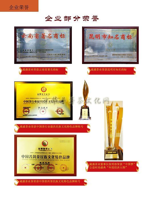 多款产品荣获金奖、银奖,产品品质与文化一致受到爱茶人的高度好评,荣列昆明市知名商标、云南省著名商标、云南省AAAAA级诚信企业之林,在中国茶行业发展中荣膺“首家中国普洱茶民族文化特色品牌”、“滇茶老字号”、“诚信品牌企业”、“百佳茶馆”及“中国茶行业最具民族文化特色品牌”等等国字号荣誉称号