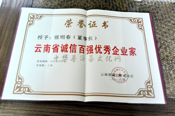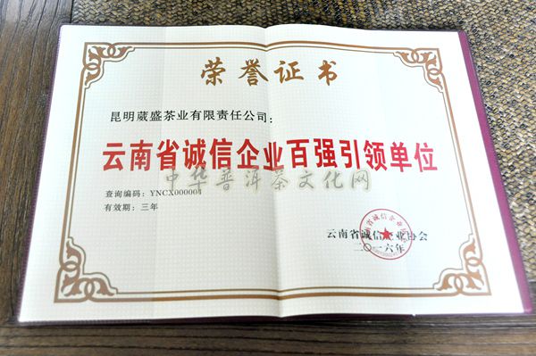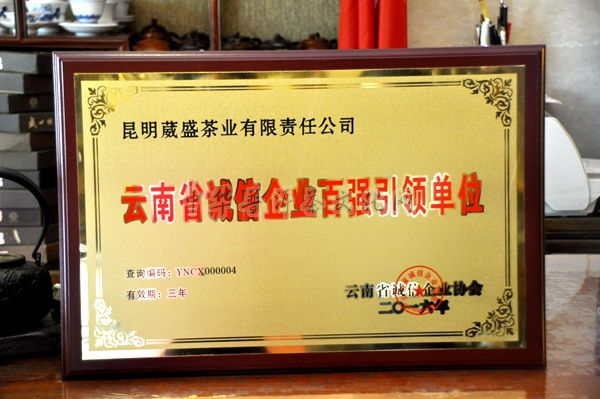 >> 葳盛茶业品牌上榜“云南省诚信企业百强引领单位”