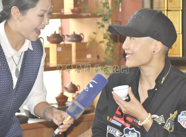 ▲茶友接受昆明广播电视台《爱随茶香》电视栏目的现场采访