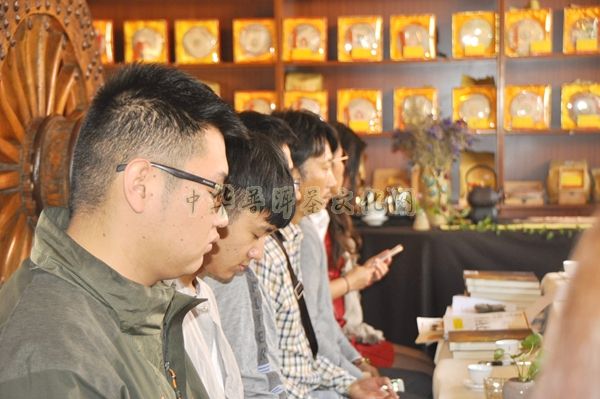 ▲茶友认真品鉴60年代倚邦贡茶