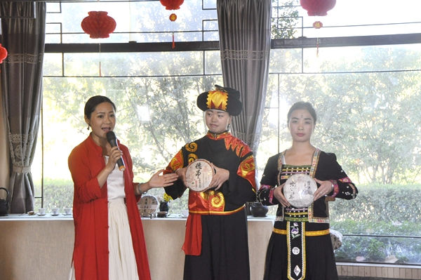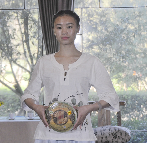 现在向我们走来的是葳盛优秀茶艺师杨涛,手持葳盛普洱-—『古滇印象』