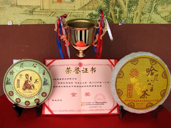 2006年“哈尼公主茶”在中国(广州)国际茶业博览会全国名优茶评比中荣获“金奖”