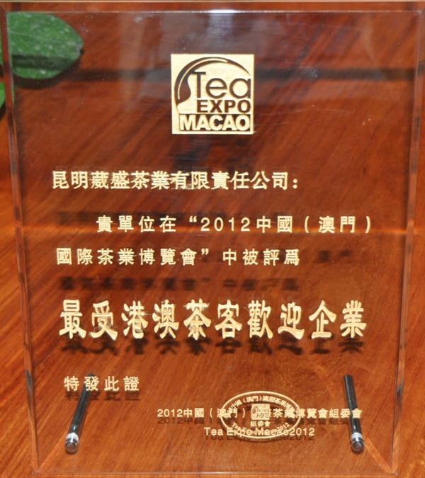 2012年葳盛茶业远赴澳门与港澳茶友交流茶文化,在中国(澳门)国际茶业博览会中被评为“最受港澳茶客欢迎企业”