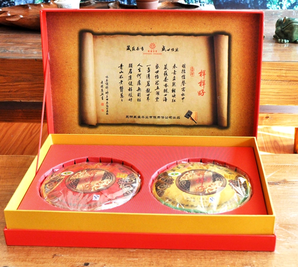 年底,而它是您表心意的最好伴手礼——『样样好』普洱茶,『样样好』普洱茶精选云南乔木大叶种古树茶箐为原料,以民间传统工艺精制而成,不仅是品鉴还是收藏,都得到了福(蝠)、禄(鹿)、寿(寿星)、禧(童男少女、幸福吉祥)、财(金钱、财富)相伴,松柏常青、益寿延年,喜悦祥和。