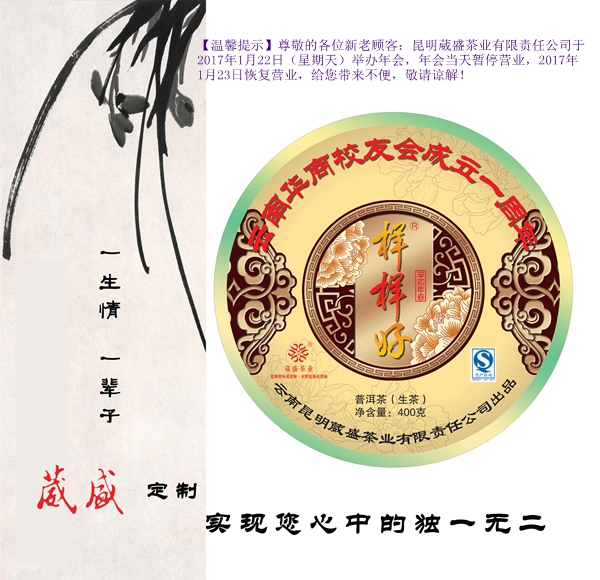 因为用心,所以卓越,“葳盛牌样样好”系列普洱茶您值得拥有,尤其是在春节到来之际,更是与你祈福康健,追求吉祥的美好愿望相契合,可以说是一款特别的“年货”。