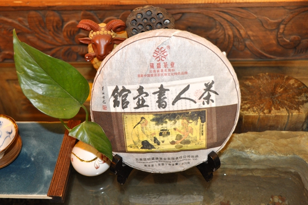 2015年葳盛茶业再度研发了一款400克的古树茶【茶人书壶馆】,原料选自古六大茶山蛮砖,按传统的制作工艺,古法石磨压制而成。外包装纸上印有一副2人对饮的吃茶图,体现一种祥和、快乐、自然的一种品茗意境。外包装纸上的【茶人书壶馆】是由中国十大杰出书法家之一的单永钦老师亲笔题词。现在售价:1500元/饼。