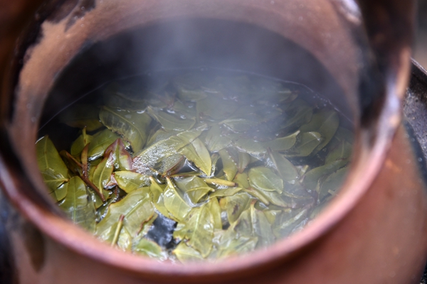 哈尼族煮土锅茶的方法比较简单,先用土锅(或瓦壶)将水烧开,随即在沸水中加入适量茶叶,待锅中茶水再次沸腾3分钟后,将茶水倾入用竹制的茶盅或土碗内,这种土锅茶煮出来的茶,茶汤呈绿黄,清香润喉,解渴,喝到嘴里会觉得醇厚绵软,清胃生津,回味无穷,哈尼人不仅自家经常饮用,还常常用于待客。