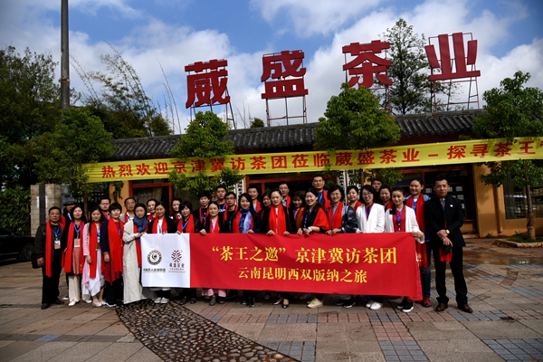 中国茶人发展联盟协同京津冀著名茶人尹纪周、赵曙光、肖思学、王霞、邓卫东、葛英华、邹雁、王爱、林艺梅、冯宇艳、汪丹丹、潘春红、穆婷婷、任英丽、唐怀素、李艳霞等共计36名代表,组成“‘茶王之邀’京津冀访茶团”,在2017年春茶采摘之际,4月17至23日开启为期一周的云南昆明、西双版纳问茶之旅,探访“普洱熟茶王”——葳盛茶业旗下“爱随茶香”背后的故事。云南昆明茶叶行业协会会长刘益成携常务副会长们亲自迎接并致欢迎辞,对这次问茶之旅的意义给予高度评价。