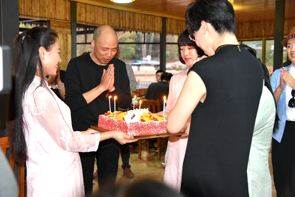 在葳盛茶业茶文化交流中心,京津冀滇四省市茶道大师共同演绎“茶王”极致汤感。在云南首届滇茶杯名优茶评比大赛中,葳盛茶业旗下云南爱随茶香茶业有限公司“爱随茶香”熟茶以94.55的最高分荣获金象奖,获得滇茶杯“茶王”称号,是改革开放以来首个云南茶界的“茶王”。葳盛茶业董事长张明萶是众所公认的大师级制茶匠人,从事茶行业二十余年来,他一直都有自己的要求和标准,坚持做好茶。坚持做健康的普洱;坚持做有品味的普洱;坚持做文化的普洱;坚持做技艺的普洱。当京津冀访茶团成员端起手中的“茶王”茶汤时,不禁浮现出著名茶文化专家尹纪周在云茶仓“茶王入仓”时的那首大气磅礴的《七律·茶王入仓》诗:“澜沧江畔起风云,鹤立千茗曰不群。紫瑞和昌肝胆照,吉祥随爱心头寻。梦中朝圣始了愿,天下闻香如沐春。三角梅开展异艳,茶王入仓蓄至尊。”