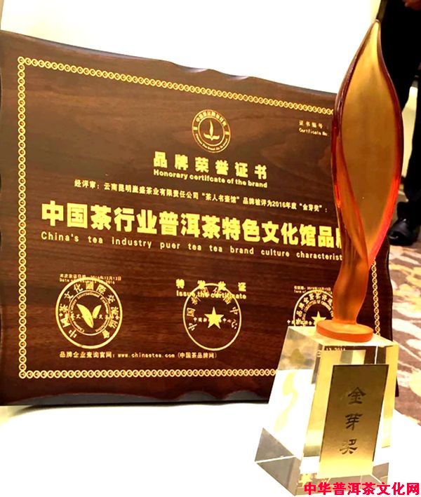 其次,在2016年的“金芽奖”颁奖盛典上,“茶人书壶馆”品牌荣获“中国茶行业普洱茶特色文化馆品牌”称号,给予了它莫大的荣耀。
