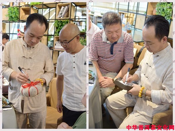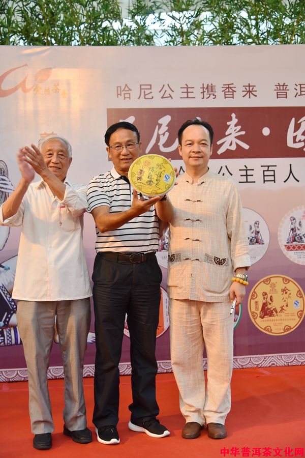 ▲高照教授、陈勋儒会长、张明春先生共同签字留念哈尼公主茶