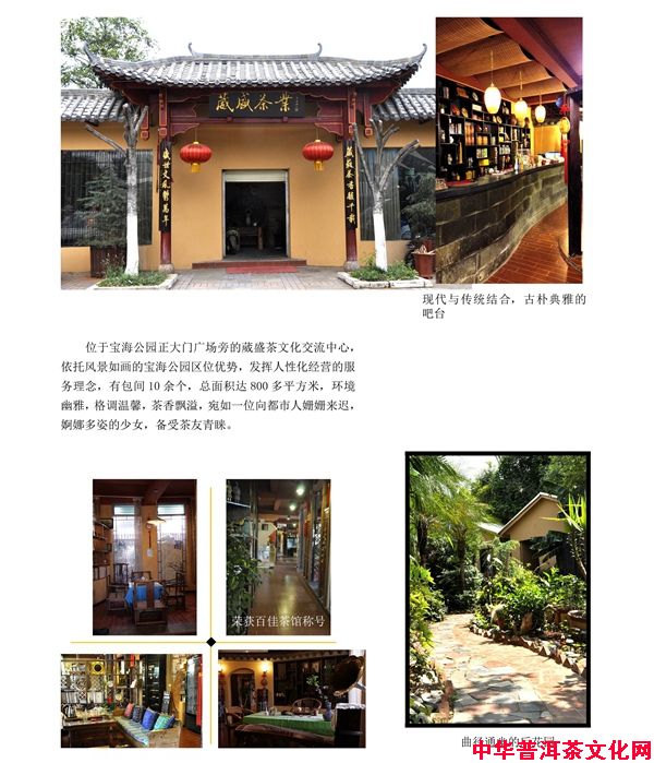 茶馆、茶楼、茶室、茶坊等已成为最具活力的新兴文化产业的组成部分,因为茶不仅是经营的一种商品,而且蕴涵着茶文化,茶具有5000多年的悠久历史,文化沉淀较深,几千年的人类社会发展历史已充分证明:文化是茶的灵魂。茶是一种人性化的商品,需要人性化的经营,所以必须有人性化的茶馆。昆明葳盛茶业有限责任公司始终以“质量求生存,诚信图发展”为宗旨,坚持“文化至深,品质至优,环境至雅,服务至诚,信誉至上,客户至尊”的经营经念,在茶馆、茶楼、茶室的经营活动中,赢得人气,赢得了社会公众的认可和好评。国内著名演员李保田慕名光临葳盛品茗;台湾著名茶人邓时海先生也到公司探讨茶道、茶艺、交流茶文化;韩国清墨节院院长金元学曾多次率团到葳盛交流、切磋茶文化,并挥毫为葳盛公司题词;珠江电影制片厂专程到葳盛茶业公司拍摄茶文化影片。这些都是恪守诚信、苦心经营茶艺馆结出的甜美果实。