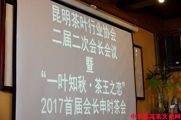 2017年8月19日,昆明茶叶行业协会二届二次会长会议暨“一叶知秋 茶王之恋”2017首届会长申时茶会,在昆明宝海路葳盛茶业茶文化交流中心举行。
