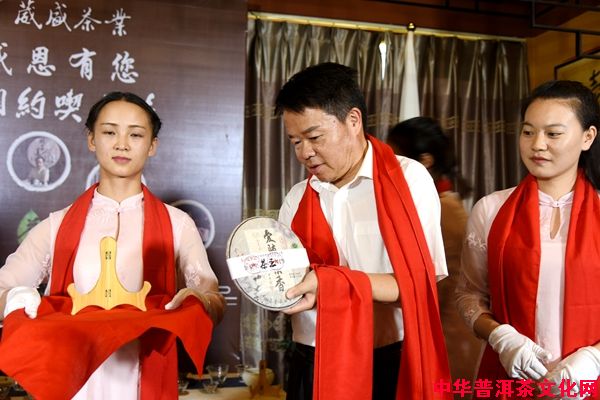 昆明市原政协副主席杨品才先生、昆明市政协秘书长周忻秘书长先生,为“茶王”开封。