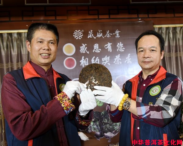 由昆明茶业协会会长,云南省国际商会茶业协会会长刘益成先生与昆明茶业协会常务副会长、葳盛茶业董事长张明春先生共同取样。