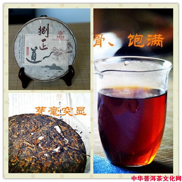 “八正道”普洱茶是由国家高级制茶工程师张明春先生精心研制开发独创的经典作品,该茶充分融合了茶禅一味的精神内涵,是中国茶文化和茶道精神在当代茶业发展中的凝炼、升华和具体运用,是传承和弘扬茶文化精神“和、静、德、怡、真”的实践结出的硕果,体现了茶文化与禅文化的有机融合。该茶精选云南大叶种乔木古树茶菁为原料,严格按照普洱茶标准及国家食品卫生标准,以传统工艺精制而成,有生茶、熟茶两种,茶品饼面端庄饱满,圆润周正,内含物质丰富,汤色明亮,滋味醇厚,喉韵悠深,耐冲耐泡,淳香持久,汲取了天地精华与大自然密林深山氤氲生态之元气,是真正的无公害健康饮品,体现了人与茶相互依托、相互融合,相互促进的茶业发展理念和茶文化不断升华的渊源关系。