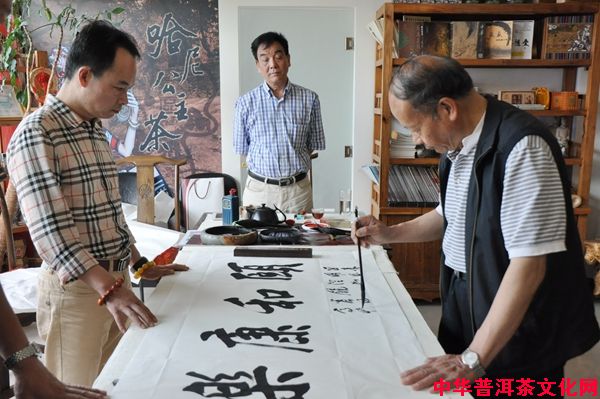 2012年8月12号单永钦老师从北京来到葳盛茶业公司与张广兴张老、张明春先生以书相交,以茶会友。