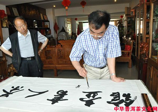 书茶结缘,真情以聚。单永钦老师其实也是一个茶文化爱好者,非常喜爱普洱茶文化,书法是他的主业,普洱茶是他的所爱。