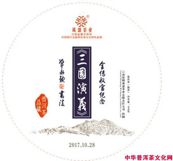 为纪念此《三国演义》书法千米长卷完美收官,葳盛茶业创始人、高级制茶工程师张明春先生匠心特制纪念普洱茶,此茶精选云南乔木大叶种古树茶菁,采用首届滇茶杯名茶评比大赛金象奖爱随茶香“茶王”原料,遵循传统制作工艺精制而成,饼型周正,松紧适中,茶品内质丰富,滋味醇厚,耐泡持久,为普洱茶之精品并充分融合历史文化及普洱茶文化之内涵,弘扬民族文化精髓,演绎书法神奇魅力,诠释和静德怡真之茶道精神,彰显了物质文明与精神文明的美丽篇章。