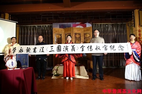 茶艺师展示单永钦先生《三国演义》古风篇,此古风篇为单永钦老师亲笔书写。