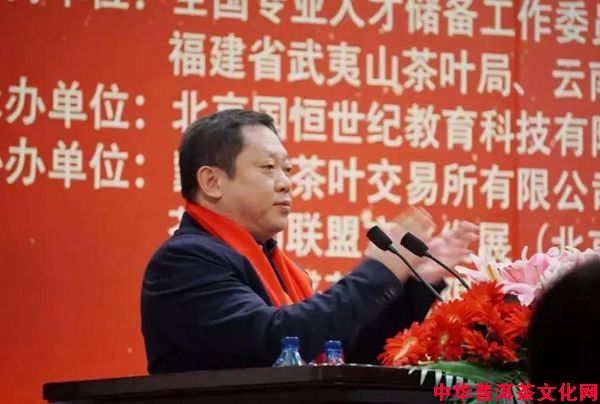▲葳盛茶业董事长张明春先生接受星级茶馆授牌