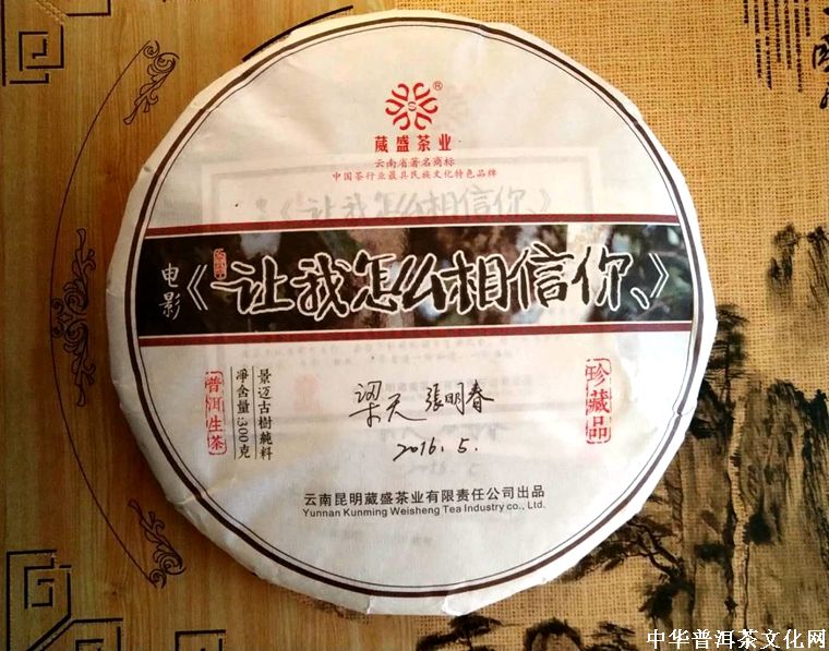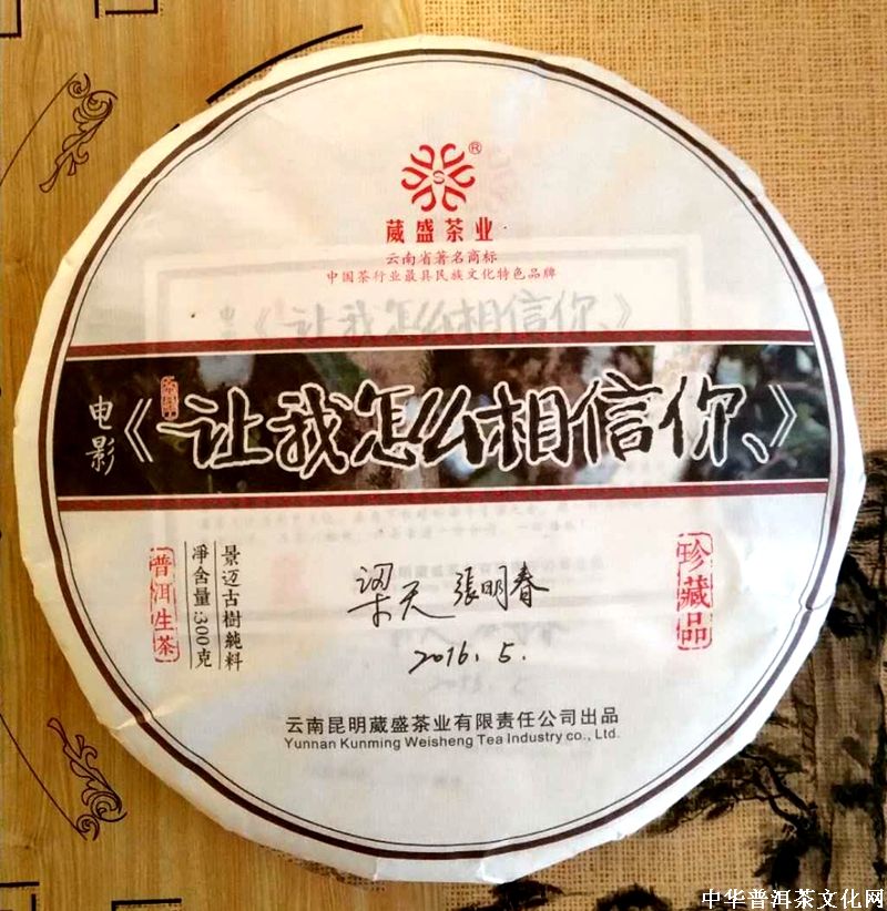 茶因人而改变,人也因茶而改变;因为茶,我们相逢,相聚;因为茶,我们相知、相爱。电影《让我怎么相信你》的出炉,演绎了当代都市生活与边疆民族生活的现实气息。为充分体现人与茶,情与爱的美好生活,葳盛茶业公司精心选用剧中景迈山古茶,研发制作一款限量专供的品藏普洱茶,呈献给世人,让有情人得到醇香、厚醇、回味的美好生活,随着岁月的延伸,将给予您及家人乐享的回报和美好绚丽的明天!
