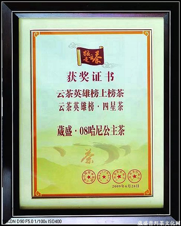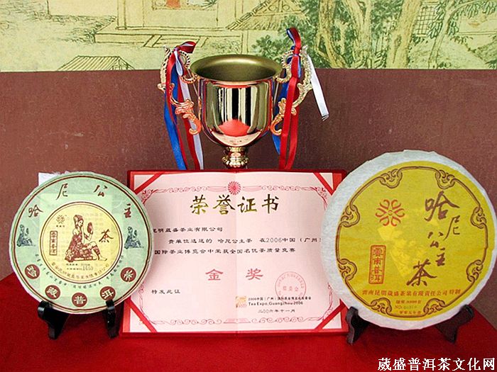 2008年年底,由《云南经济日报》和昆明葳盛茶业公司联合举办《葳盛杯 我与普洱茶》全国有奖征文活动,广大爱茶人士纷纷参与。各种关于普洱茶的评选活动火热进行,其中中国茶品牌(普洱)“金芽奖”、“陆羽奖”品牌评选活动尤为引起人们的关注,通过评选“哈尼公主”品牌荣获金芽奖“中国十大最具潜力品牌”。