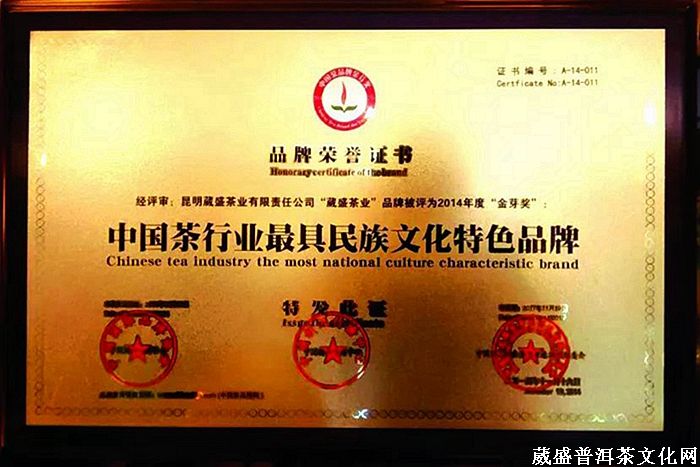 2019年(己亥年)葳盛茶业匠心研制体现着中华民族文化自信、民族团结、和谐、祖国兴旺昌盛的哈尼公主茶,2005年问世至今,每年都有限量发行,作为云南民族文化代表,她精选云南澜沧江流域古茶山乔木大叶种古树春茶茶菁为原料,以民间传统工艺精制而成,条索肥壮,饼形圆润饱满,汤感醇厚饱满,花蜜香明显,回甘持久,是品鉴和收藏的极佳饮品!在5月份的第19届武汉茶博会期间,葳盛茶业参与“2019中国好茶叶/茶馆最受消费者喜爱的品牌”活动,经过大众网络投票和专家委员会评定,昆明葳盛茶业有限责任公司最终荣获“中国好茶叶最受消费者喜爱的品牌”称号。