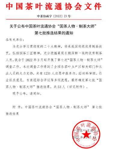 2022年荣获中国茶叶流通协会“国茶人物·制茶大师”
