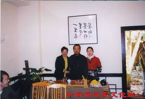著名演员李保田(中)和葳盛茶艺馆的茶艺师在一起